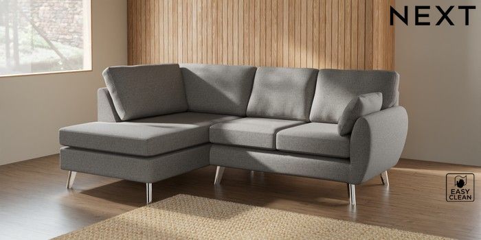 7.3.1 Buy Wilson Medium Corner Chaise - Left Hand Woven Chenille Easy Clean Light Grey Metal Tapered - Chrome from the Seasons online shop Click here to use our website with more accessibility support, for example screen readers