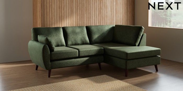 7.3.1 Buy Wilson Medium Corner Chaise - Right Hand Boucle Chenille Dark Moss Green Retro Tapered - Dark Brown from the Seasons online shop Click here to use our website with more accessibility support, for example screen readers