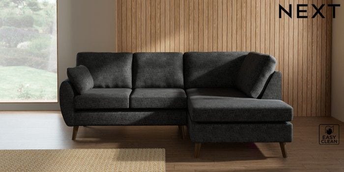 7.3.1 Buy Wilson Medium Corner Chaise - Right Hand Boucle Weave Easy Clean Charcoal Grey Retro Tapered - Mid from the Seasons online shop Click here to use our website with more accessibility support, for example screen readers