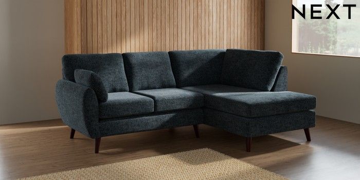 7.3.1 Buy Wilson Medium Corner Chaise - Right Hand Chunky Chenille Dark Navy Blue Retro Tapered - Dark Brown from the Seasons online shop Click here to use our website with more accessibility support, for example screen readers