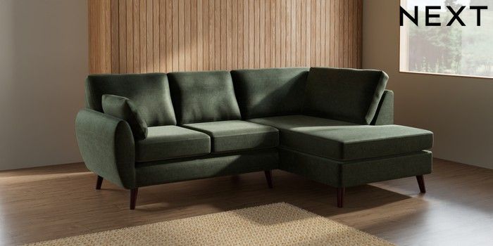7.3.1 Buy Wilson Medium Corner Chaise - Right Hand Luxe Chenille Mid Green Retro Tapered - Dark Brown from the Seasons online shop Click here to use our website with more accessibility support, for example screen readers