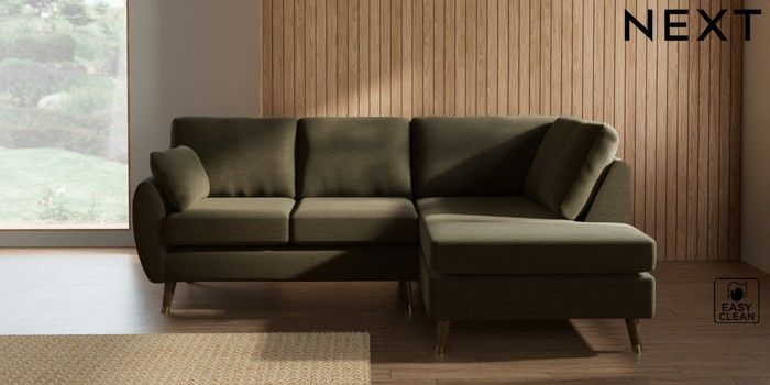 7.3.1 Buy Wilson Medium Corner Chaise - Right Hand Fine Chenille Easy Clean Dark Moss Green Low Retro Tapered Metal Cap - Mid from the Seasons online shop Click here to use our website with more accessibility support, for example screen readers