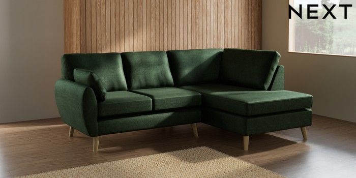 7.3.1 Buy Wilson Medium Corner Chaise - Right Hand Luxe Chenille Dark Green Retro Tapered - Light from the Seasons online shop Click here to use our website with more accessibility support, for example screen readers