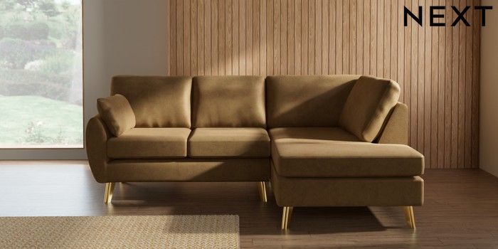 7.3.1 Buy Wilson Medium Corner Chaise - Right Hand Luxe Chenille Honey Yellow Metal Tapered - Gold from the Seasons online shop Click here to use our website with more accessibility support, for example screen readers