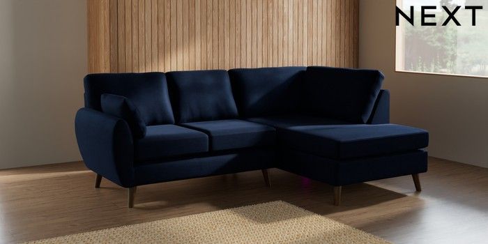 7.3.1 Buy Wilson Medium Corner Chaise - Right Hand Luxe Chenille Navy Blue Retro Tapered - Mid from the Seasons online shop Click here to use our website with more accessibility support, for example screen readers