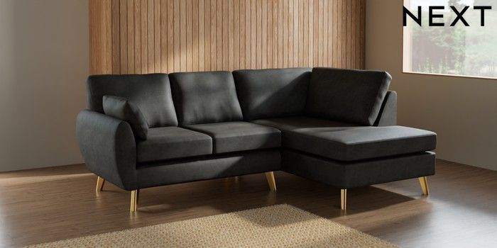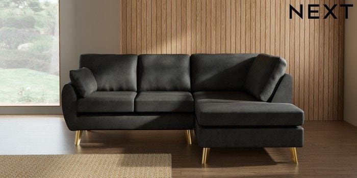 7.3.1 Buy Wilson Medium Corner Chaise - Right Hand Monza Faux Leather Easy Clean Dark Grey Metal Tapered - Gold from the Seasons online shop