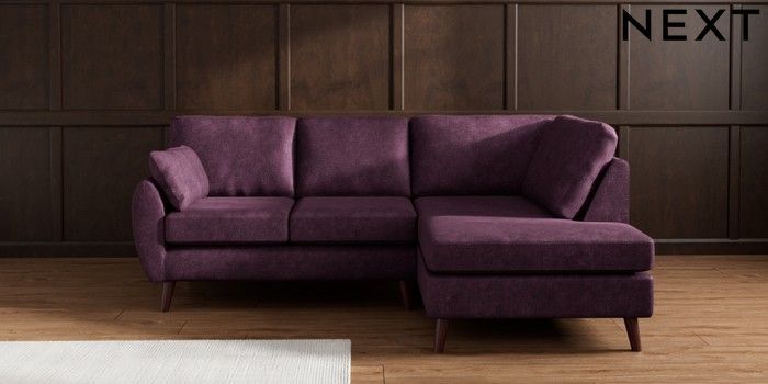 7.3.1 Buy Wilson Medium Corner Chaise - Right Hand Plush Chenille Dark Plum Purple Retro Tapered - Dark Brown from the Seasons online shop Click here to use our website with more accessibility support, for example screen readers