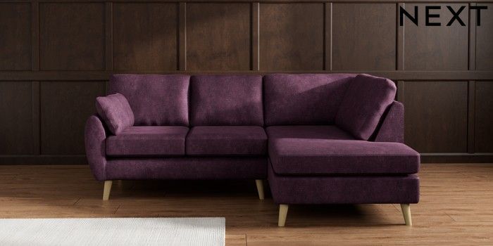 7.3.1 Buy Wilson Medium Corner Chaise - Right Hand Plush Chenille Dark Plum Purple Retro Tapered - Light from the Seasons online shop Click here to use our website with more accessibility support, for example screen readers
