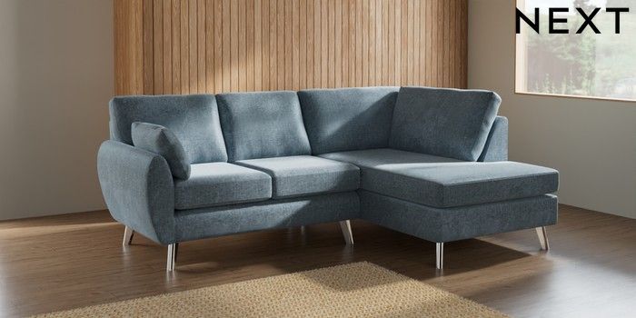 7.3.1 Buy Wilson Medium Corner Chaise - Right Hand Plush Chenille Light Blue Metal Tapered - Chrome from the Seasons online shop Click here to use our website with more accessibility support, for example screen readers