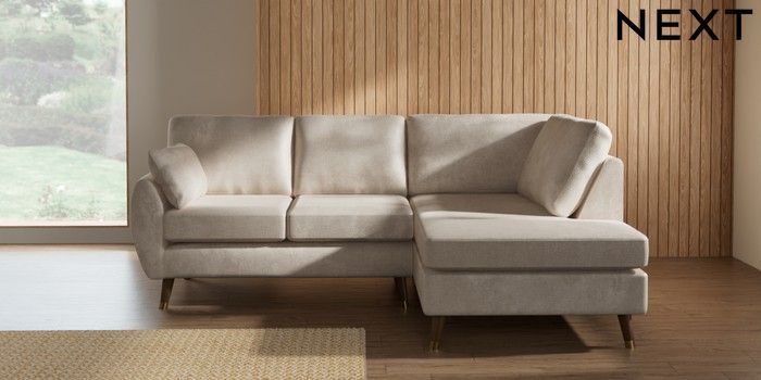 7.3.1 Buy Wilson Medium Corner Chaise - Right Hand Plush Chenille Oyster Low Retro Tapered Metal Cap - Mid from the Seasons online shop Click here to use our website with more accessibility support, for example screen readers