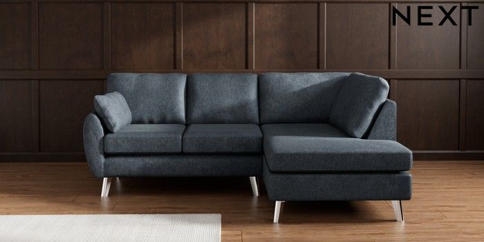 7.3.1 Buy Wilson Medium Corner Chaise - Right Hand Plush Chenille Slate Blue Metal Tapered - Chrome from the Seasons online shop Click here to use our website with more accessibility support, for example screen readers