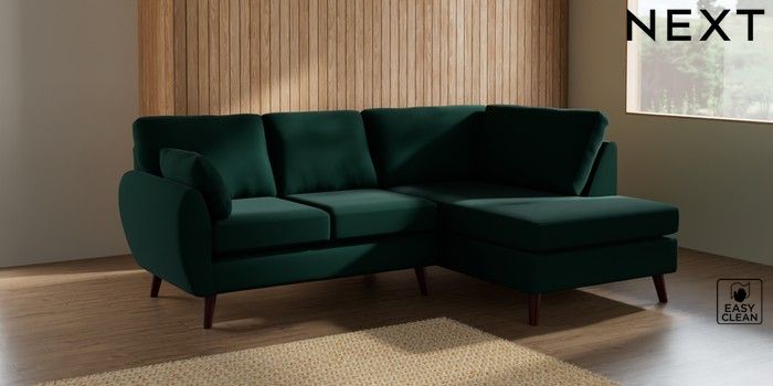 7.3.1 Buy Wilson Medium Corner Chaise - Right Hand Plush Velvet Easy Clean Bottle Green Retro Tapered - Dark Brown from the Seasons online shop