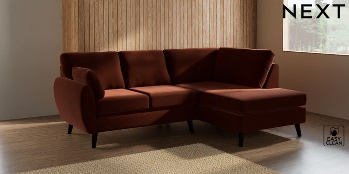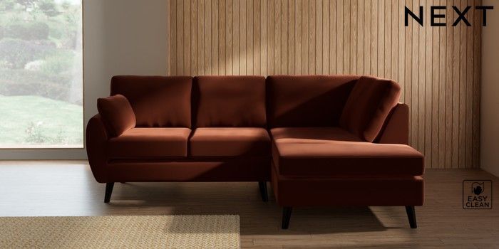 7.3.1 Buy Wilson Medium Corner Chaise - Right Hand Plush Velvet Easy Clean Ginger Orange Retro Tapered - Dark from the Seasons online shop Click here to use our website with more accessibility support, for example screen readers