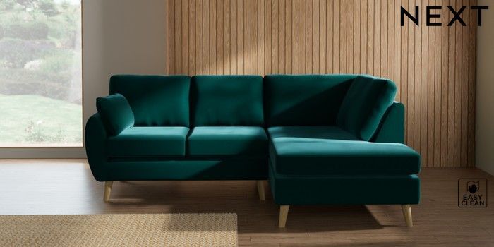 7.3.1 Buy Wilson Medium Corner Chaise - Right Hand Plush Velvet Easy Clean Juniper Green Retro Tapered - Light from the Seasons online shop Click here to use our website with more accessibility support, for example screen readers