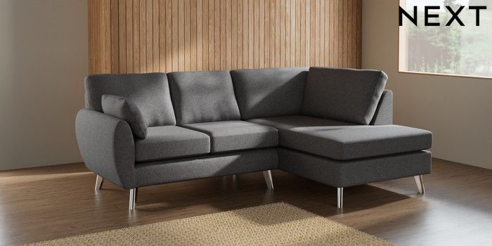 7.2.10 Buy Wilson Medium Corner Chaise - Right Hand Studio Chenille Mid Grey Metal Tapered - Chrome from the Seasons online shop Click here to use our website with more accessibility support, for example screen readers