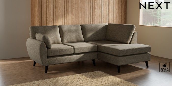 7.3.1 Buy Wilson Medium Corner Chaise - Right Hand Woven Chenille Easy Clean Mid Natural Retro Tapered - Dark from the Seasons online shop Click here to use our website with more accessibility support, for example screen readers