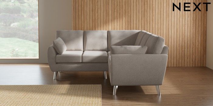 7.3.1 Buy Wilson Small Corner Sofa - Universal Chunky Chenille Oyster Metal Tapered - Chrome from the Seasons online shop Click here to use our website with more accessibility support, for example screen readers