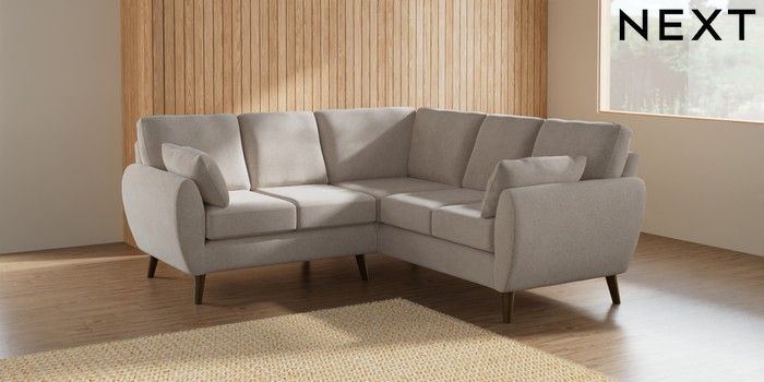 7.2.10 Buy Wilson Small Corner Sofa - Universal Chunky Chenille Oyster Retro Tapered - Mid from the Seasons online shop Click here to use our website with more accessibility support, for example screen readers