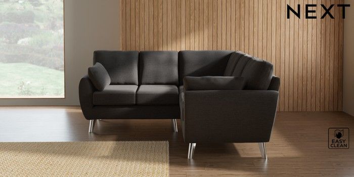 7.3.1 Buy Wilson Small Corner Sofa - Universal Fine Chenille Easy Clean Dark Smoke Grey Metal Tapered - Chrome from the Seasons online shop Click here to use our website with more accessibility support, for example screen readers