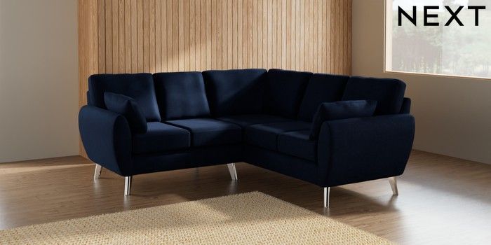 7.3.1 Buy Wilson Small Corner Sofa - Universal Luxe Chenille Navy Blue Metal Tapered - Chrome from the Seasons online shop Click here to use our website with more accessibility support, for example screen readers