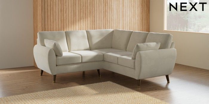 7.3.1 Buy Wilson Small Corner Sofa - Universal Luxe Chenille Oyster Low Retro Tapered Metal Cap - Mid from the Seasons online shop Click here to use our website with more accessibility support, for example screen readers