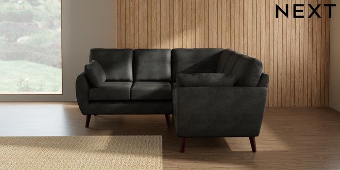 7.3.1 Buy Wilson Small Corner Sofa - Universal Monza Faux Leather Easy Clean Dark Grey Retro Tapered - Dark Brown from the Seasons online shop Click here to use our website with more accessibility support, for example screen readers