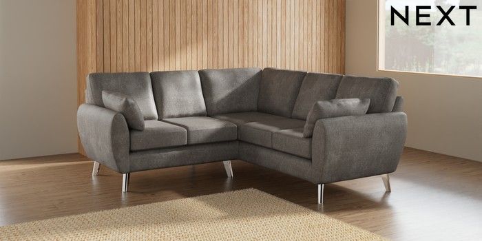 7.2.10 Buy Wilson Small Corner Sofa - Universal Plush Chenille Light Grey Metal Tapered - Chrome from the Seasons online shop Click here to use our website with more accessibility support, for example screen readers