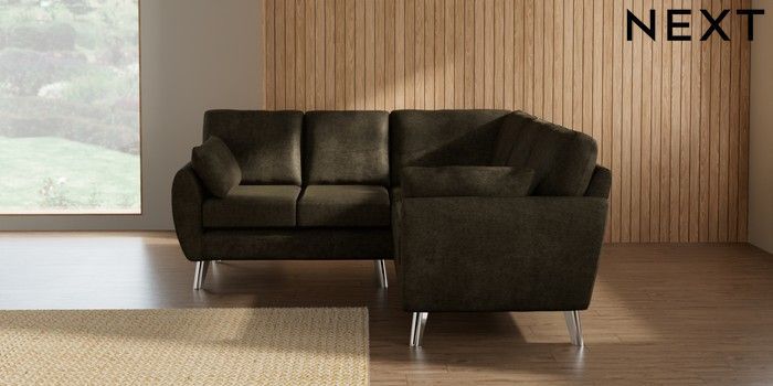 7.3.1 Buy Wilson Small Corner Sofa - Universal Plush Chenille Moss Green Metal Tapered - Chrome from the Seasons online shop Click here to use our website with more accessibility support, for example screen readers