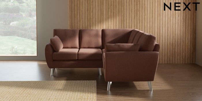 7.3.1 Buy Wilson Small Corner Sofa - Universal Relaxed Linen Look Light Rust Brown Metal Tapered - Chrome from the Seasons online shop Click here to use our website with more accessibility support, for example screen readers