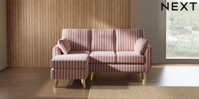 7.3.1 Buy Wilson Small Sofa Chaise - Left Hand Bold Chenille Stripe Dark Pink Metal Tapered - Gold from the Seasons online shop Click here to use our website with more accessibility support, for example screen readers