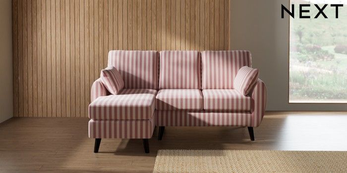 7.3.1 Buy Wilson Small Sofa Chaise - Left Hand Bold Chenille Stripe Dark Pink Retro Tapered - Dark from the Seasons online shop Click here to use our website with more accessibility support, for example screen readers