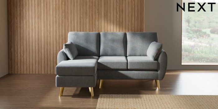 7.3.1 Buy Wilson Small Sofa Chaise - Left Hand Chunky Marl Mid Grey Metal Tapered - Gold from the Seasons online shop Click here to use our website with more accessibility support, for example screen readers