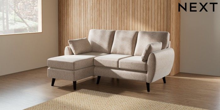 7.3.1 Buy Wilson Small Sofa Chaise - Left Hand Cotswold Chenille Light Natural Retro Tapered - Dark from the Seasons online shop Click here to use our website with more accessibility support, for example screen readers