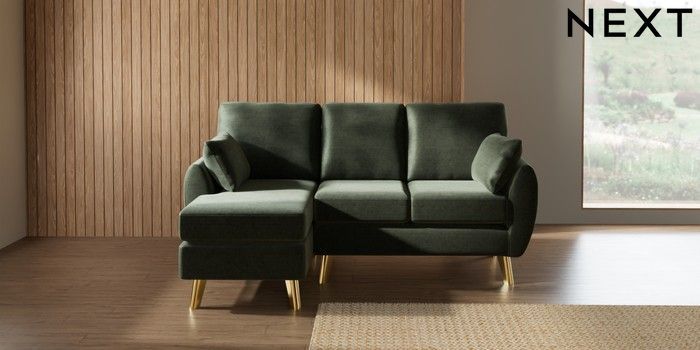 7.3.1 Buy Wilson Small Sofa Chaise - Left Hand Luxe Chenille Mid Green Metal Tapered - Gold from the Seasons online shop Click here to use our website with more accessibility support, for example screen readers