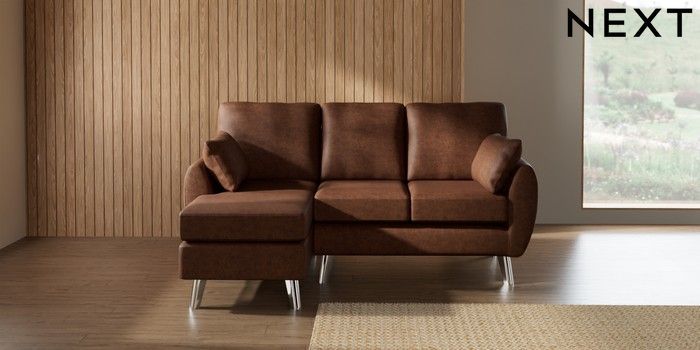 7.3.1 Buy Wilson Small Sofa Chaise - Left Hand Monza Faux Leather Easy Clean Chestnut Brown Metal Tapered - Chrome from the Seasons online shop