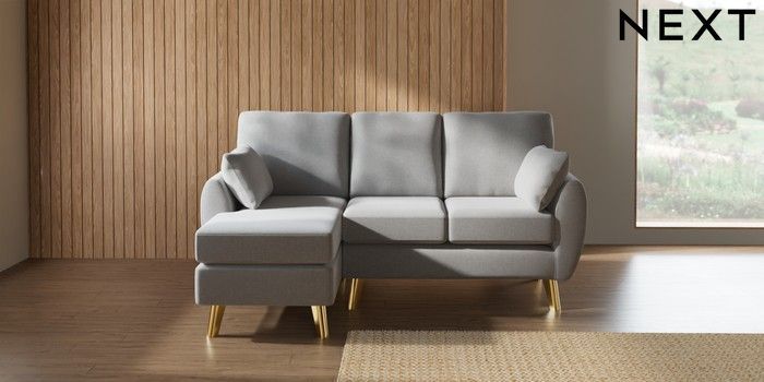7.3.1 Buy Wilson Small Sofa Chaise - Left Hand Natural Mix Light Grey Metal Tapered - Gold from the Seasons online shop Click here to use our website with more accessibility support, for example screen readers