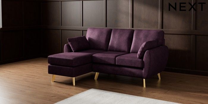7.3.1 Buy Wilson Small Sofa Chaise - Left Hand Plush Chenille Dark Plum Purple Metal Tapered - Gold from the Seasons online shop