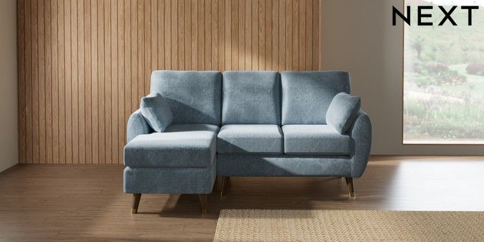 7.3.1 Buy Wilson Small Sofa Chaise - Left Hand Plush Chenille Light Blue Low Retro Tapered Metal Cap - Mid from the Seasons online shop Click here to use our website with more accessibility support, for example screen readers
