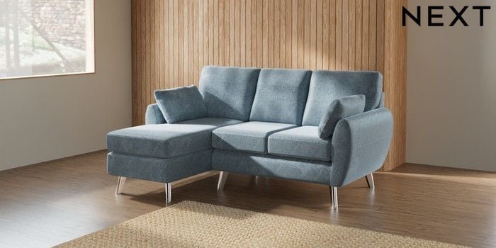 7.3.1 Buy Wilson Small Sofa Chaise - Left Hand Plush Chenille Light Blue Metal Tapered - Chrome from the Seasons online shop Click here to use our website with more accessibility support, for example screen readers
