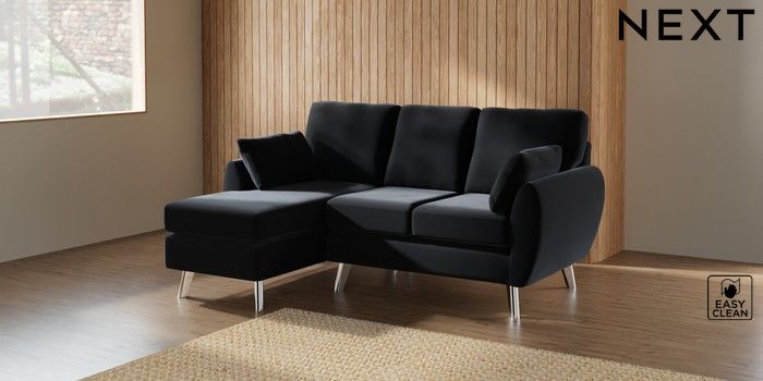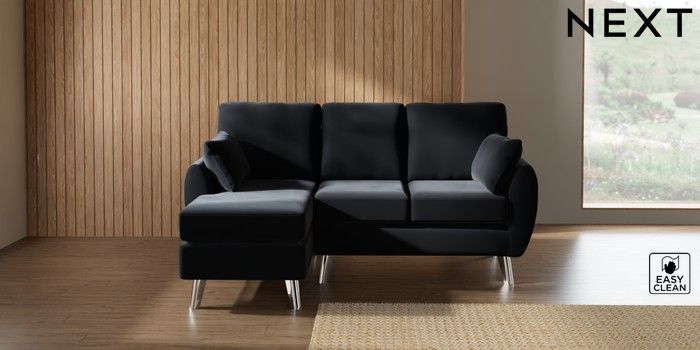 7.3.1 Buy Wilson Small Sofa Chaise - Left Hand Plush Velvet Easy Clean Charcoal Grey Metal Tapered - Chrome from the Seasons online shop Click here to use our website with more accessibility support, for example screen readers