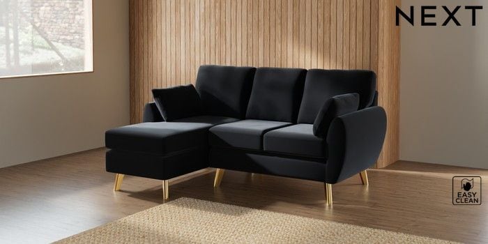 7.3.1 Buy Wilson Small Sofa Chaise - Left Hand Plush Velvet Easy Clean Charcoal Grey Metal Tapered - Gold from the Seasons online shop