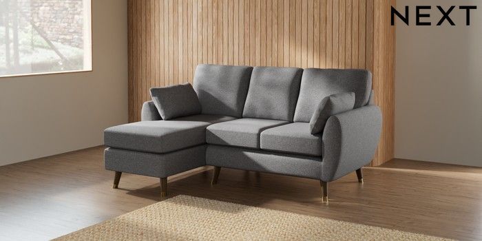 7.3.1 Buy Wilson Small Sofa Chaise - Left Hand Studio Chenille Mid Grey Low Retro Tapered Metal Cap - Mid from the Seasons online shop Click here to use our website with more accessibility support, for example screen readers