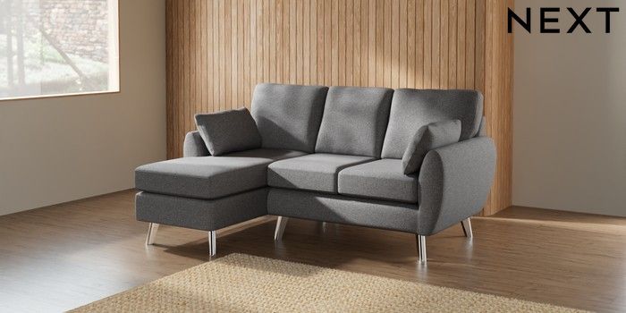 7.2.10 Buy Wilson Small Sofa Chaise - Left Hand Studio Chenille Mid Grey Metal Tapered - Chrome from the Seasons online shop Click here to use our website with more accessibility support, for example screen readers