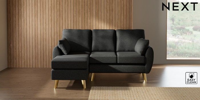 7.3.1 Buy Wilson Small Sofa Chaise - Left Hand Tweedy Blend Easy Clean Charcoal Grey Metal Tapered - Gold from the Seasons online shop
