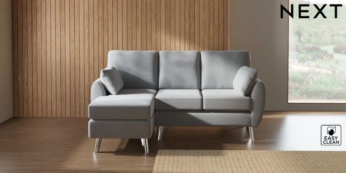 7.3.1 Buy Wilson Small Sofa Chaise - Left Hand Tweedy Blend Easy Clean Light Silver Grey Metal Tapered - Chrome from the Seasons online shop Click here to use our website with more accessibility support, for example screen readers