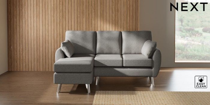 7.3.1 Buy Wilson Small Sofa Chaise - Left Hand Woven Chenille Easy Clean Light Grey Metal Tapered - Chrome from the Seasons online shop Click here to use our website with more accessibility support, for example screen readers