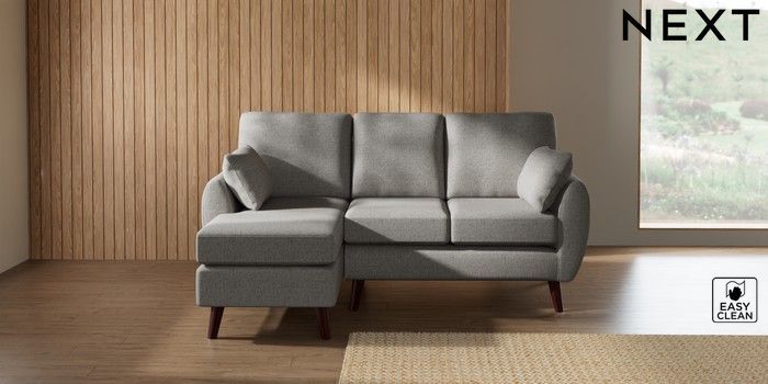 7.3.1 Buy Wilson Small Sofa Chaise - Left Hand Woven Chenille Easy Clean Light Grey Retro Tapered - Dark Brown from the Seasons online shop Click here to use our website with more accessibility support, for example screen readers