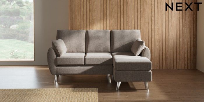 7.3.1 Buy Wilson Small Sofa Chaise - Right Hand Chunky Chenille Light Dove Metal Tapered - Chrome from the Seasons online shop Click here to use our website with more accessibility support, for example screen readers
