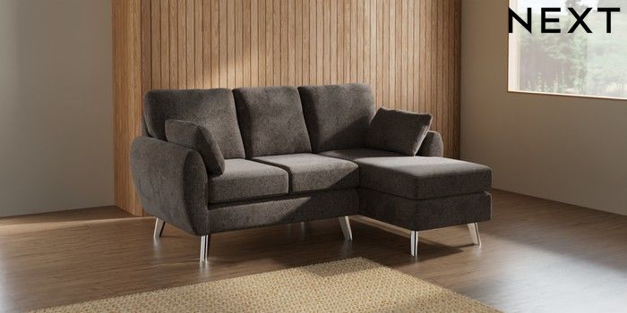 7.3.1 Buy Wilson Small Sofa Chaise - Right Hand Chunky Chenille Mink Brown Metal Tapered - Chrome from the Seasons online shop Click here to use our website with more accessibility support, for example screen readers