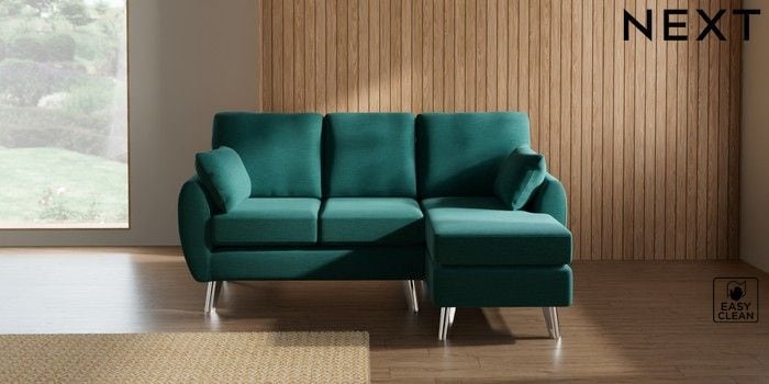 7.3.1 Buy Wilson Small Sofa Chaise - Right Hand Fine Chenille Easy Clean Dark Juniper Green Metal Tapered - Chrome from the Seasons online shop Click here to use our website with more accessibility support, for example screen readers